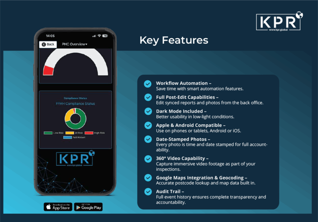 Designed for simplicity and efficiency, KPR comes with predefined checklists while allowing unlimited notes and photos to be added for thorough, detailed reports.